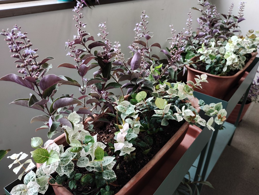 床置きの植木鉢には、先述した西洋ニンジンボクと
